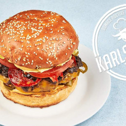 The menu at Karl’s Burger includes a variety of mouthwatering options, such as the Western burger "Karl's" which features Angus beef, bacon, onion rings, and cheddar cheese. For those looking for a vegetarian option, they also have a veggie burger available.